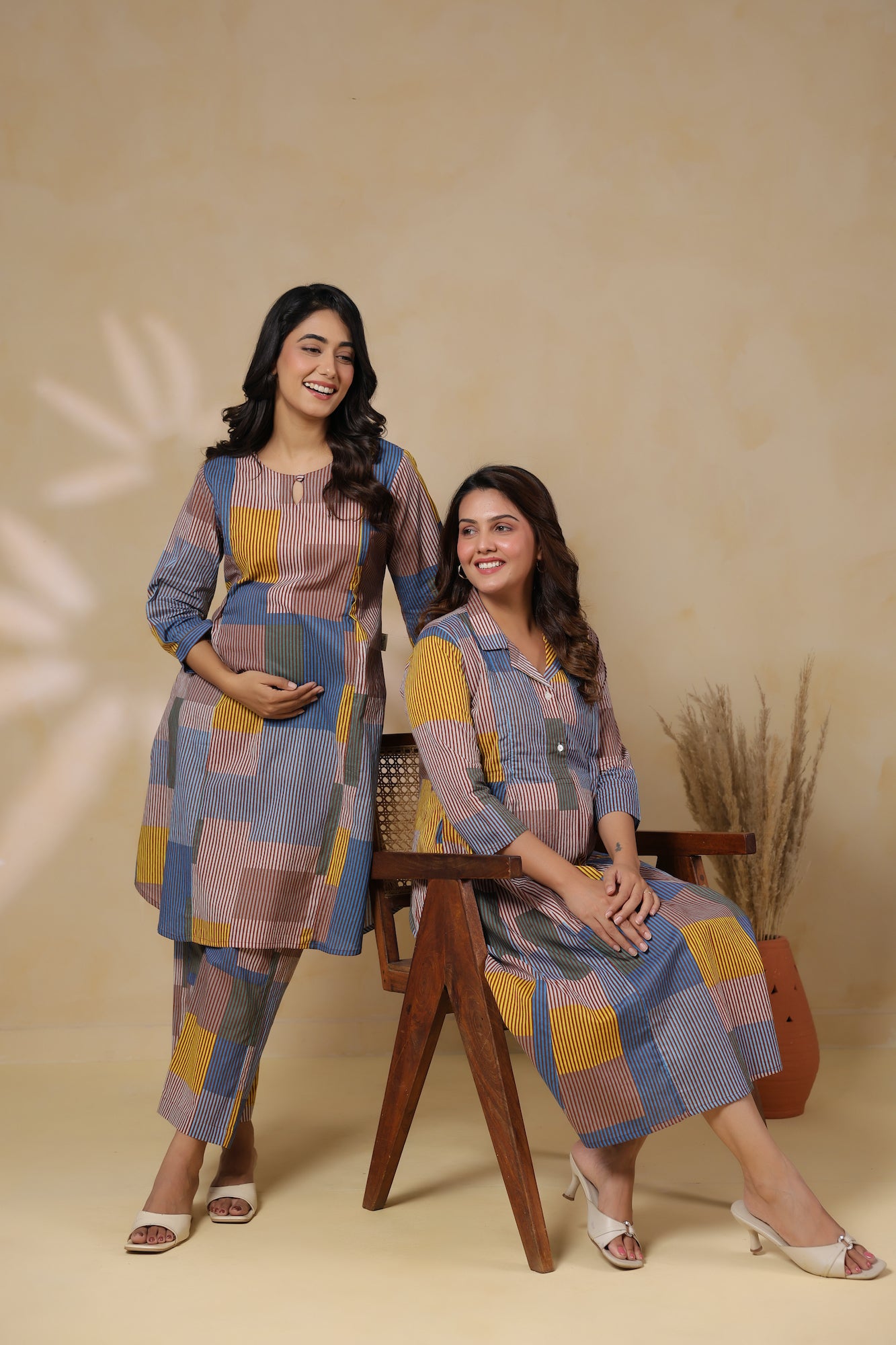 Pastel Pink Abstract Cotton Maternity - Nursing Co-ord Set