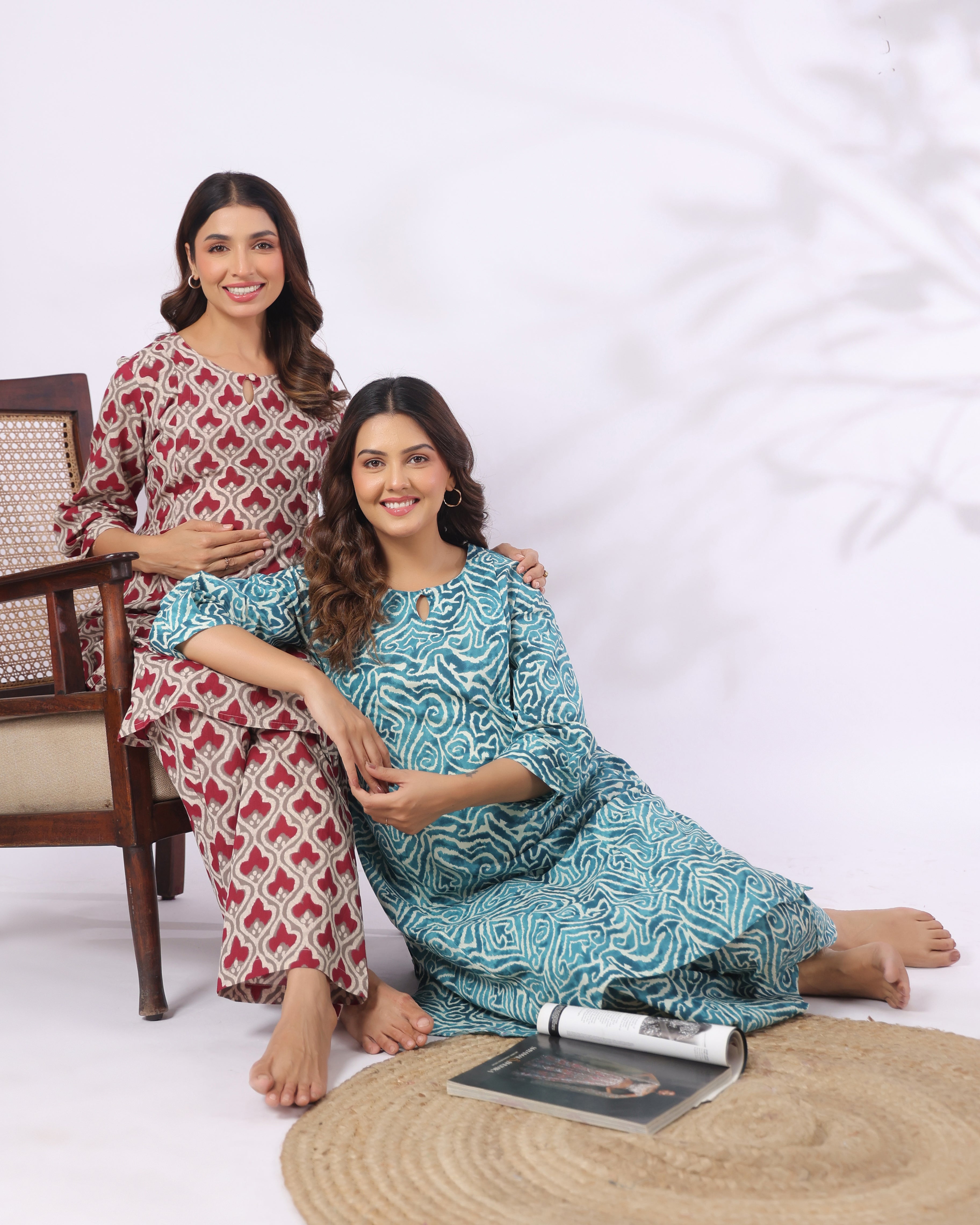 Teal Ocean Swirl Cotton Maternity - Nursing Co-ord Set